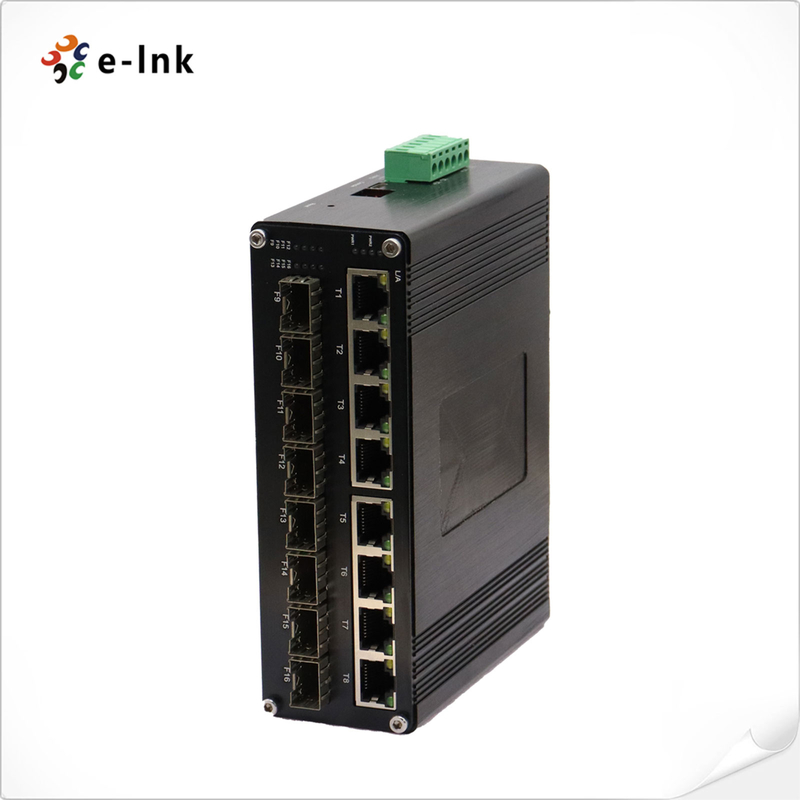 Przemysłowy L2+ 8-port 10/100/1000T +8- Port 1000X SFP Zarządzany przełącznik Ethernet |